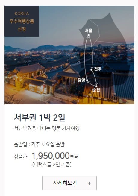 전국일주 2박 3일 일정, 동부권 1박 2일일정,서부권 1박2일 일정이 있습니다.
