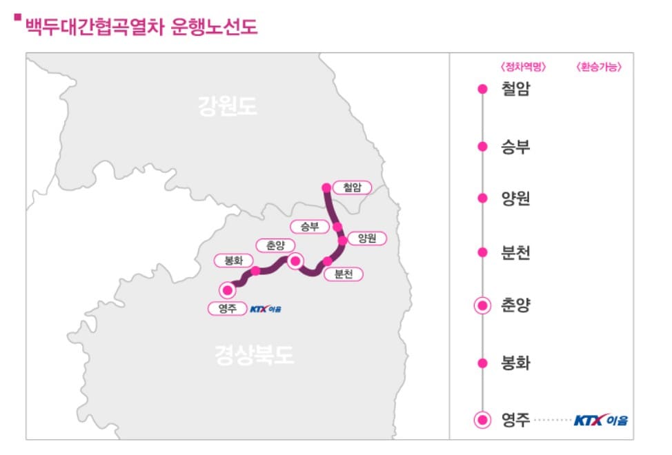 백두대간 협곡열차 운행 노선도