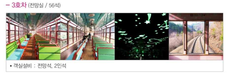 - 3호차 : 전망실, 전망석, 2인석, 56석