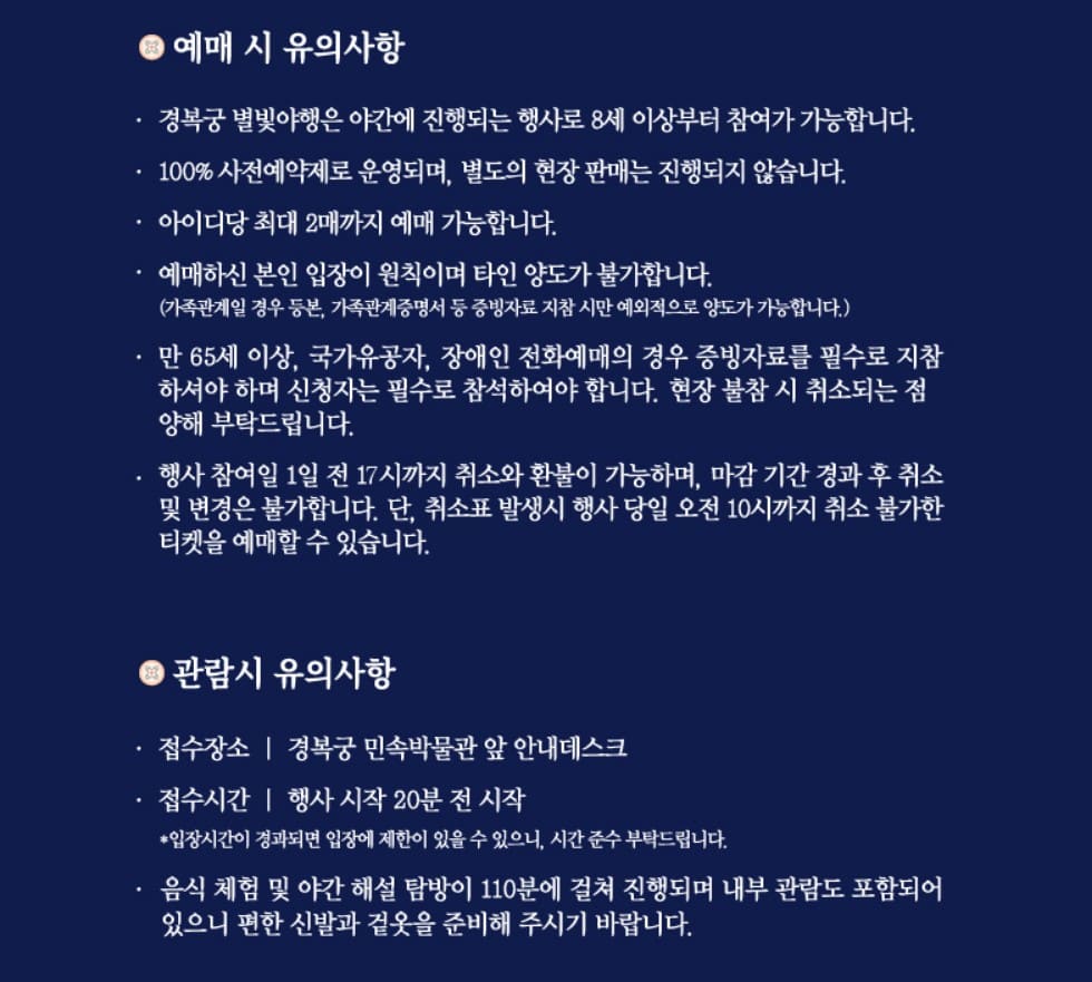 경복궁 별빛야행은 야간에 진행되는 행사로 8세 이상부터 참여가 가능합니다.
